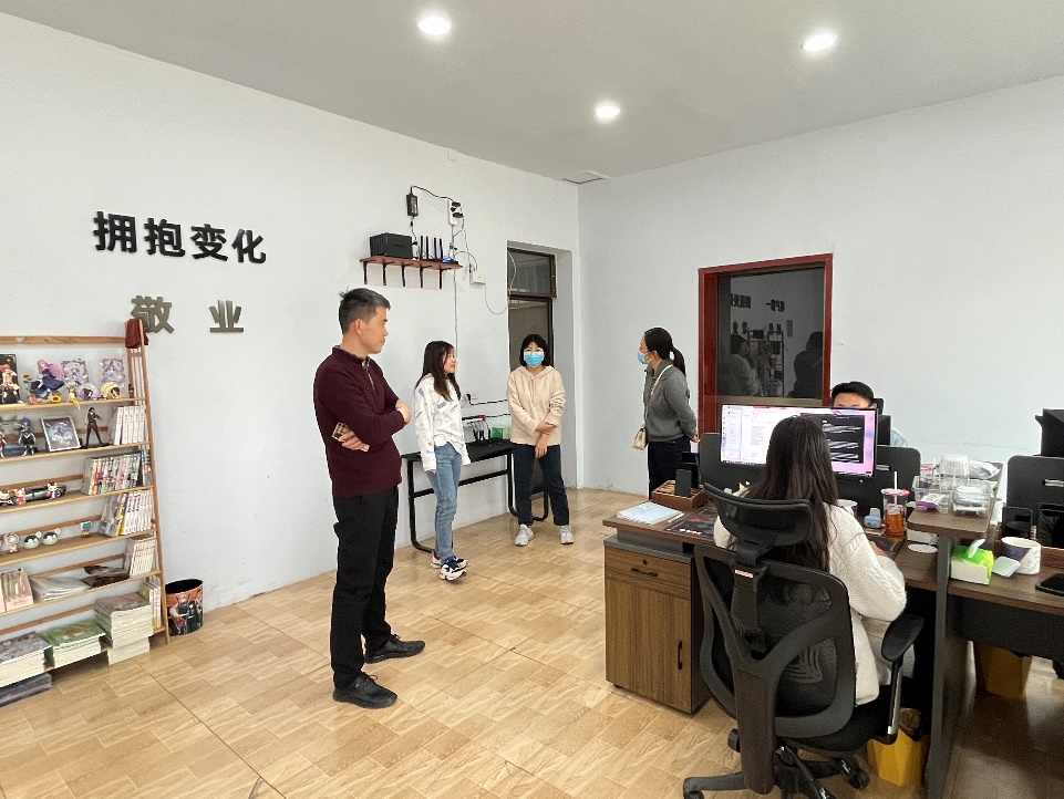 赵惠对到访的母校领导和老师表示热烈的欢迎,她带领我们参观了工作室,直播室,并介绍了企业发展现状和未来发展愿景,她表示将一如既往地关注和支持母校的发展,期待与母校进一步深化校企方面的合作,共同促进母校事业蓬勃发展。