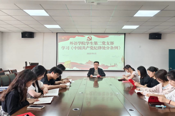 为扎实开展党纪学习教育,教育引导支部全体党员筑牢思想防线,守住纪律底线,5月24日,学生第二党支部在外语楼W209党员活动室开展“学党纪党规,强党风党性”主题党日活动。