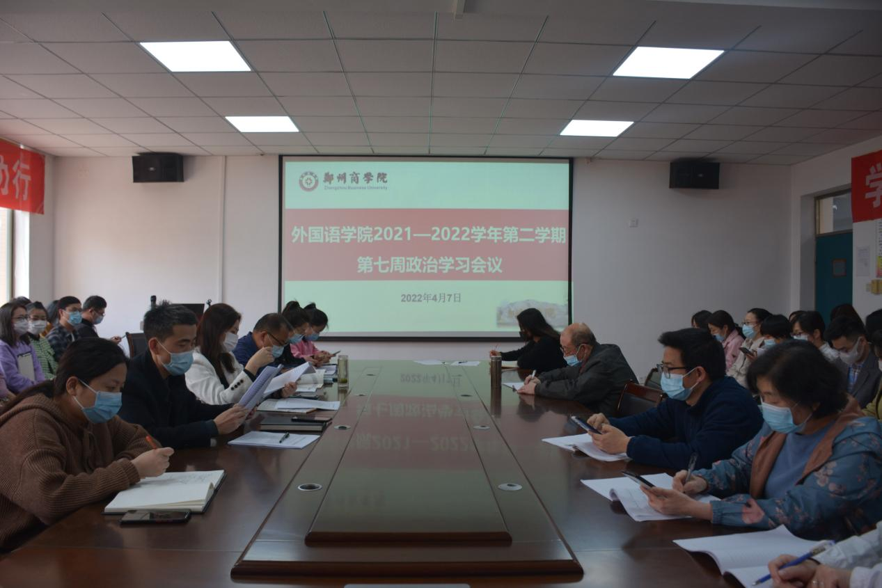 4月7日下午,外语学院组织无课教职工在外语楼209会议室进行本周政治学习,会议由外语学院党委书记王克志主持。会议伊始,王书记带领大家认真学习了《习近平总书记关于能力作风建设的重要论述(一)——能力方面》,以及《beat365唯一官网2021-2022学年第二学期第一次主管会暨工作计划汇报会会议纪要》。会上,王书记强调,“能力作风建设年”活动作为2022年的一项政治任务,要认真组织,扎实推进,确保活动取得满意效果,实现党员干部能力大提升、作风大转变,为推动beat365事业高质量发展提供坚强保证。