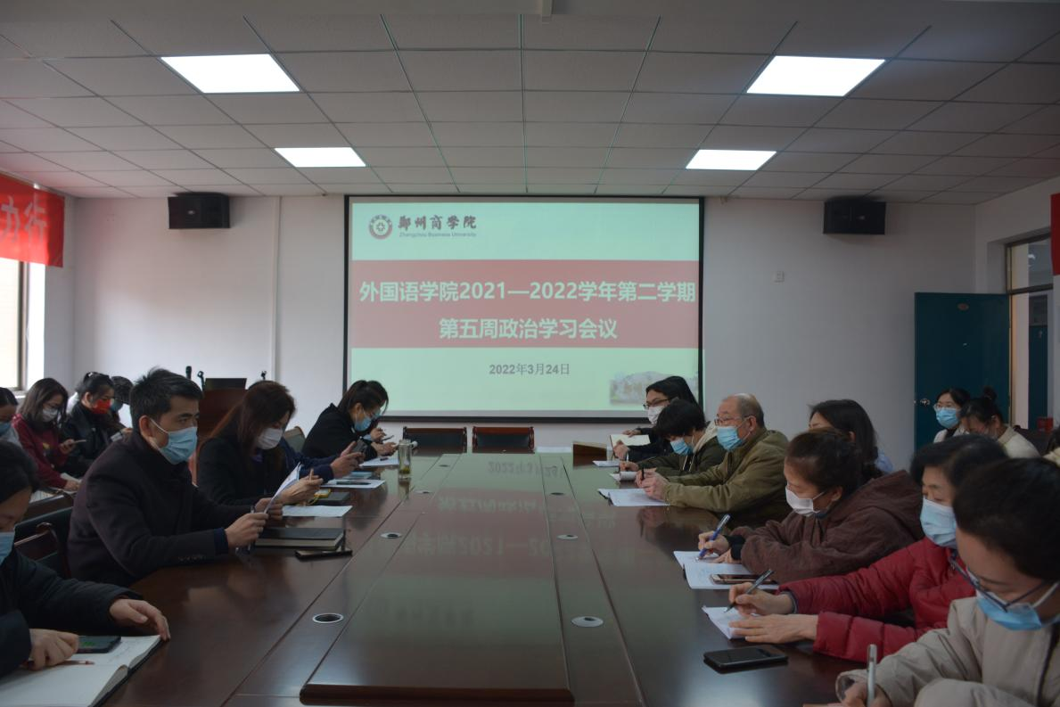 3月24日下午,外语学院组织无课教职工在外语楼209会议室进行本周的政治学习,会议由外语学院党委书记王克志主持。会议伊始,王书记带领大家认真学习了《关于推动党史学习教育常态化长效化的意见》和校领导的讲话精神。王书记强调,学习党的历史永无止境,为党的事业奋斗也永无止境。知者行之始,行者知之成。推动党史学习教育常态化长效化,贵在知行合一、关键在行动。