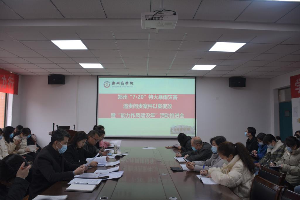 3月18日,外语学院召开郑州“7·20”特大暴雨灾害追责问责案件以案促暨“能力作风建设年”活动推进会,外语学院党委书记王克志、院长王勃、副院长邱培磊、各教研室主任及各支部书记参加会议。