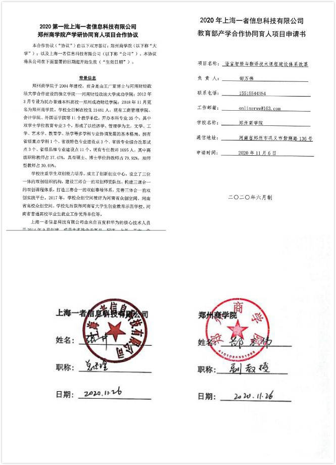 beat365外国语学院在产学研方面又取得新成就,与上海一者信息科技有限公司联合申报获批2020教育部产学研协同育人项目合作基地。