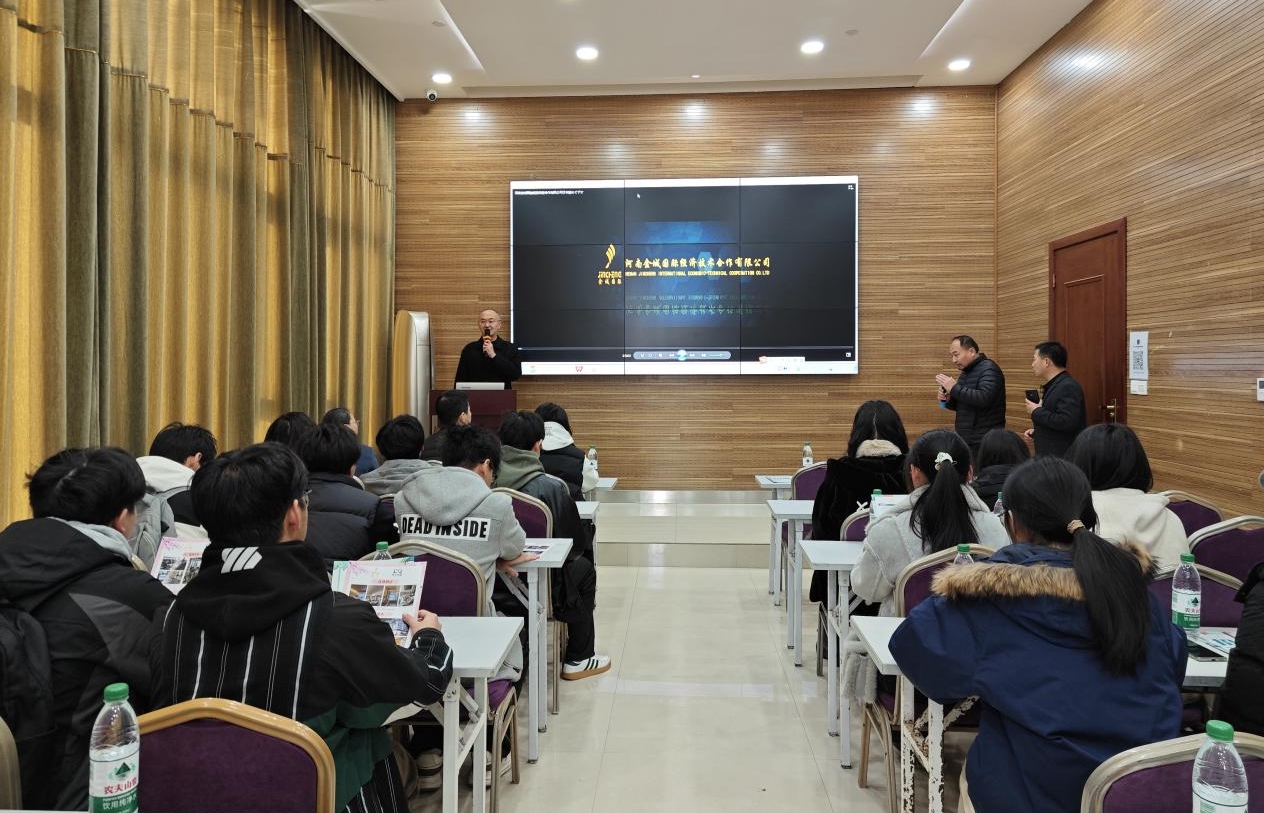 11月28日上午,日语专业教师带领学生赴河南金城国际经济技术合作有限公司进行见习参观,日本部许光磊部长介绍了公司近35年的发展历程,同时结合社会和企业对人才的需求,为学生进行了一场精彩的就业指导讲座;邱静经理结合里士满酒店项目和2025大阪世博会实习项目两个案例进行了境外就职指导,拓宽了学生的眼界。