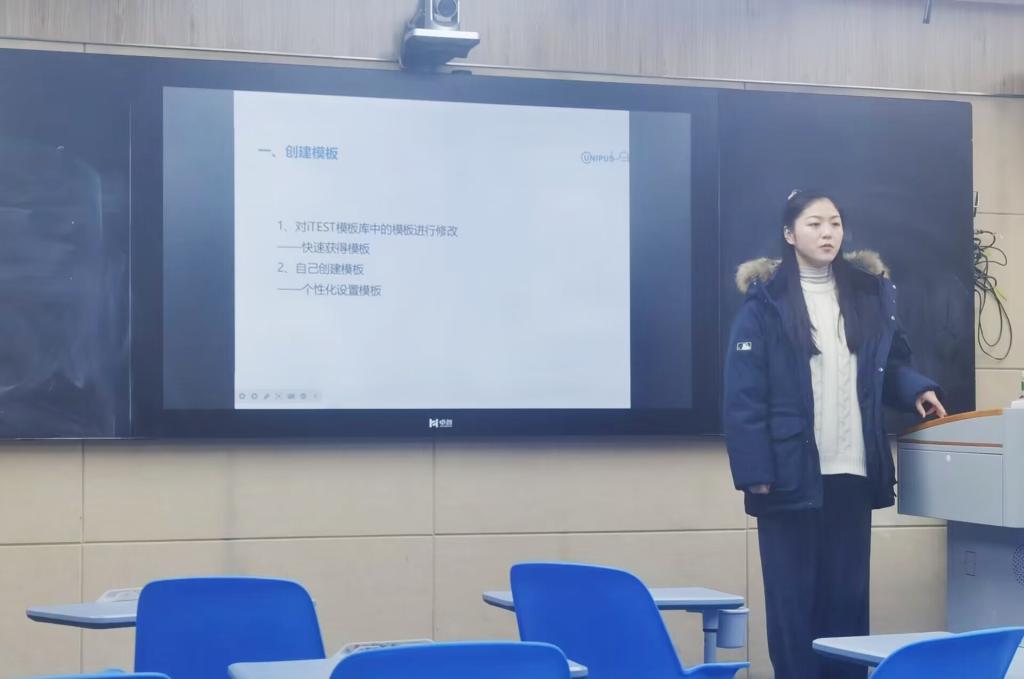 为助力大学英语第一教研室教师熟练运用iTEST智能测试云平台进行期末考试的试卷录制工作,进一步提升教学信息化水平,12月17日下午,基于iTEST智能测试云平台的录题实操分享会在我院W104教室举行。此次分享会由大学英语第一教研室的阙江畅老师主讲。