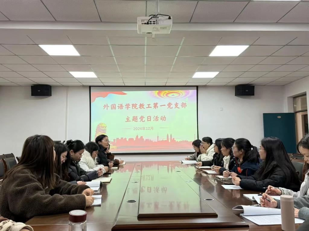 2024年12月19日下午,教工第一党支部全体成员在外语楼209会议室开展了12月份主题党日活动,本次活动旨在进一步提升党员教师的政治素养和理论水平。