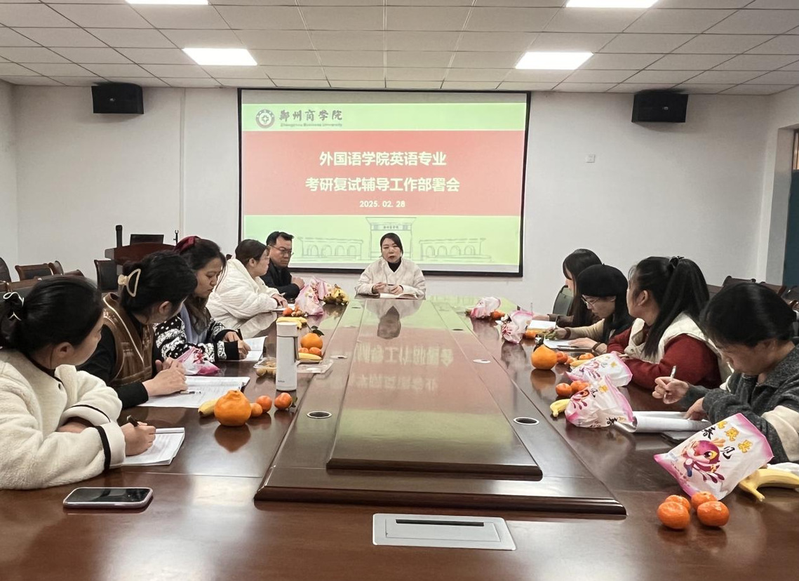 为扎实做好2025届考研学生的复试指导和准备工作,助力学子在考研路上乘风破浪,成功上岸,2月28日下午,我院英语专业教研室在外语楼209会议室开展2025届毕业生考研复试辅导工作部署会,我院副院长赵保成、英语专业教研室主任程玮以及全体考研指导教师参加了会议。