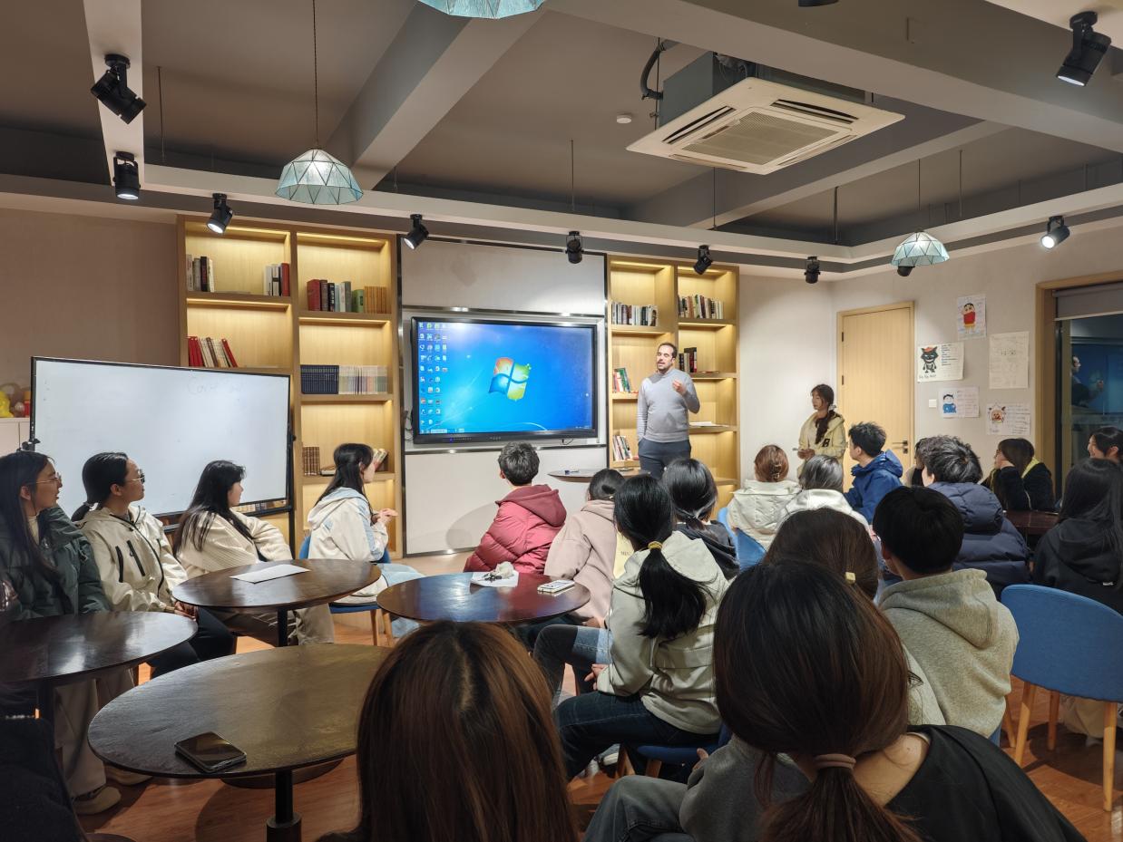 “英”才荟萃,“语”你相遇! 我院于3月11日在W102多元文化交流厅举办了第一期英语角活动,主题为“以英为媒,声生不息”,外籍教师James和Talal参与了本次活动。