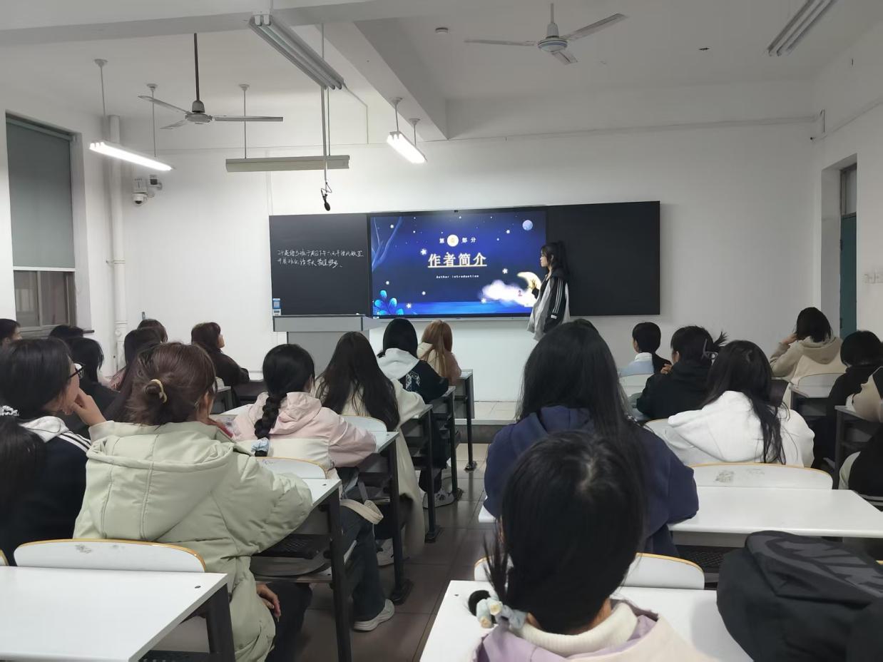 活动在主持人铿锵有力的开场中拉开帷幕,随即进入同学们分享书籍的精彩环节。同学们以真挚的情感和生动的语言,分享了自己与书籍相遇的美好瞬间和深刻感悟。一位同学分享了《月亮和六便士》,她以细腻的语言描述了主人公斯特里克兰德对艺术的执着追求,以及在理想与现实之间的挣扎。另一位同学带来了《城南旧事》的分享。她用温暖的语言讲述了主人公英子在老北京城南的童年生活,书中细腻的描写和感人的故事让同学们仿佛置身于那个充满烟火气息的年代,感受到人与人之间的温情与纯真。同学们的分享涉猎广泛,从经典名著到文学佳作,展现了深厚的文化底蕴和开阔的阅读视野,令人耳目一新。