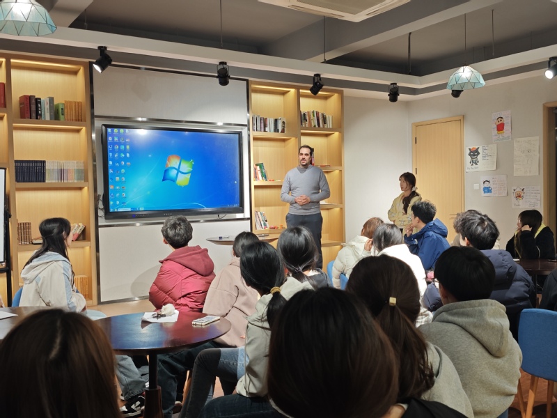 “英”才荟萃,“语”你相遇!为促进同学们的英语学习与跨文化交流,我院于3月11日在多元文化交流厅W102成功举办了本学期第一期英语角活动。本次活动主题为“以英为媒,声生不息”,特别邀请了外籍教师James和Talal,与同学们共同探索英语的魅力。此次活动旨在为英语爱好者提供一个互动交流平台,帮助大家结识志同道合的朋友,拓展社交圈子,同时在互动中相互鼓励、支持与学习。