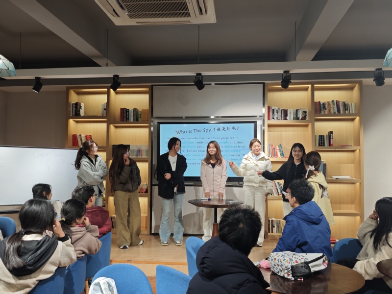 在活动的过程中,组织者还穿插了“谁是卧底”和“你画我猜”等轻松有趣的英语小游戏。参赛者通过用英文描述抽到的词语,其他同学则投票选出“卧底”或猜出谜底。这些互动环节不仅增加了活动的趣味性,也帮助大家在轻松愉快的氛围中巩固了英语词汇,并提高了语言的实际运用能力。