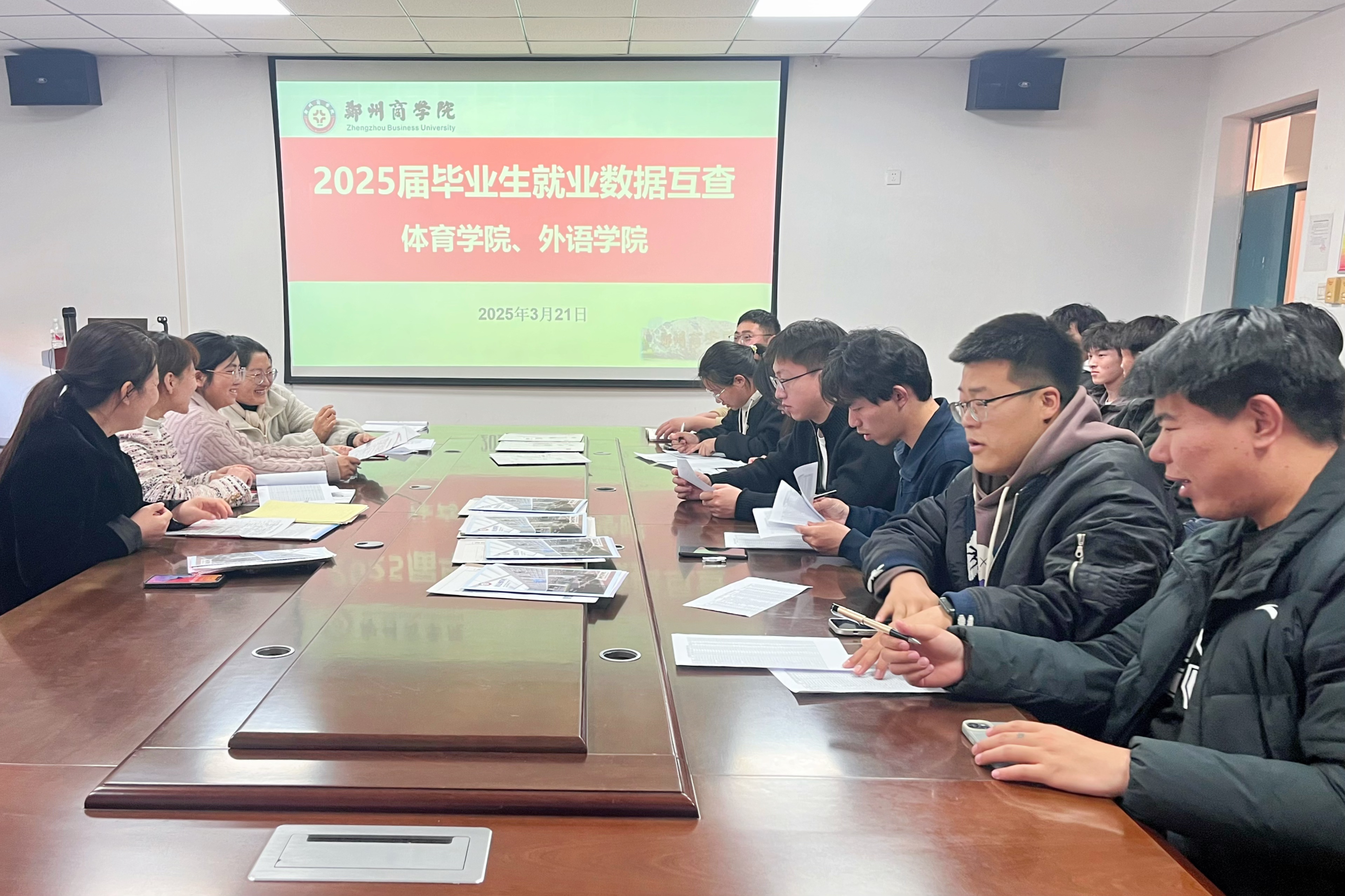 为进一步提升就业统计工作质量,确保就业数据真实准确,3月21日下午,我院与体育学院联合开展了2025届毕业生就业数据互查工作。此次互查以“交叉检查、相互学习、共同提高”为宗旨,旨在通过两院协同联动,共同筑牢就业数据质量防线,推动毕业生就业工作再上新台阶。