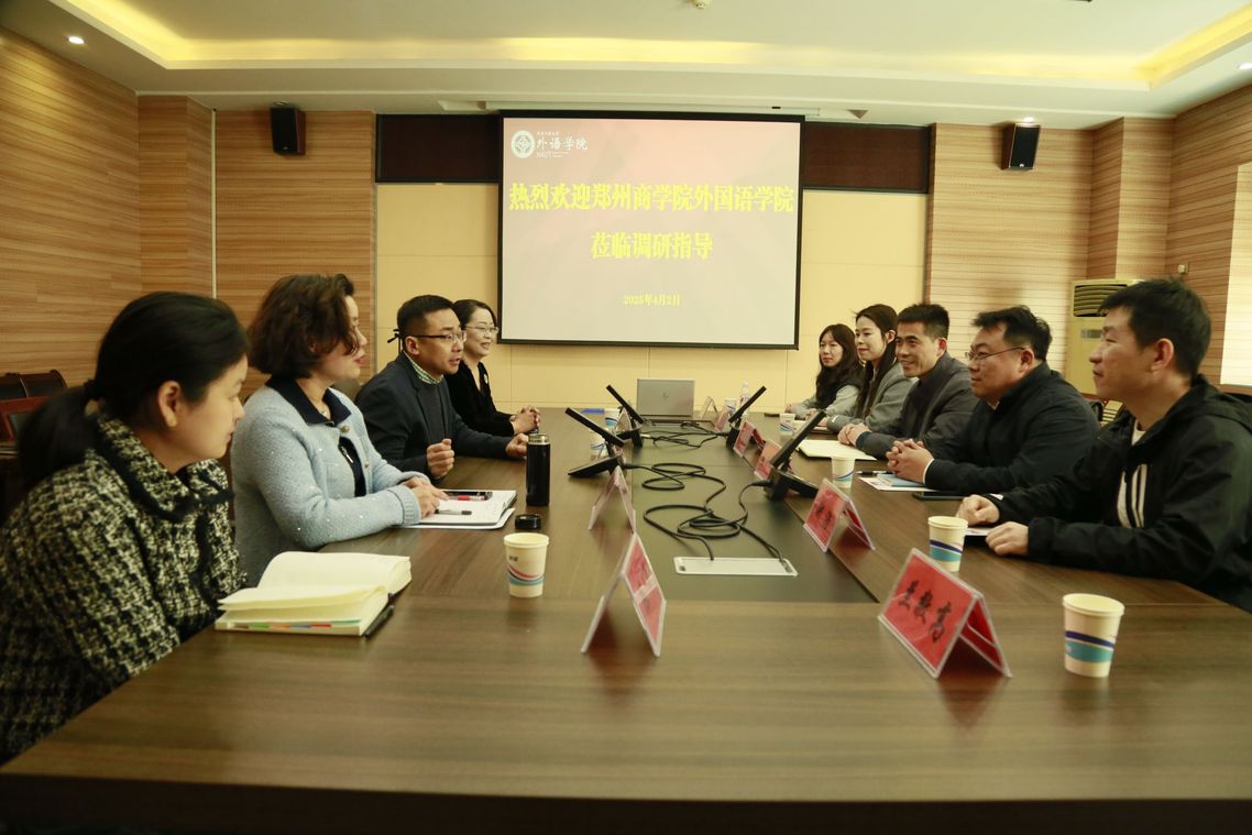 4月2日,为进一步推进我院本科教育教学审核评估工作,我院党委书记王克志、副院长赵保成一行6人赴河南工业大学外国语学院调研学习本科教育教学审核评估工作。河南工业大学外国语学院党委书记王云涛、院长黄辉辉、副院长葛丽萍等相关领导及骨干教师出席,会议由河南工业大学外国语学院党委书记王云涛主持。