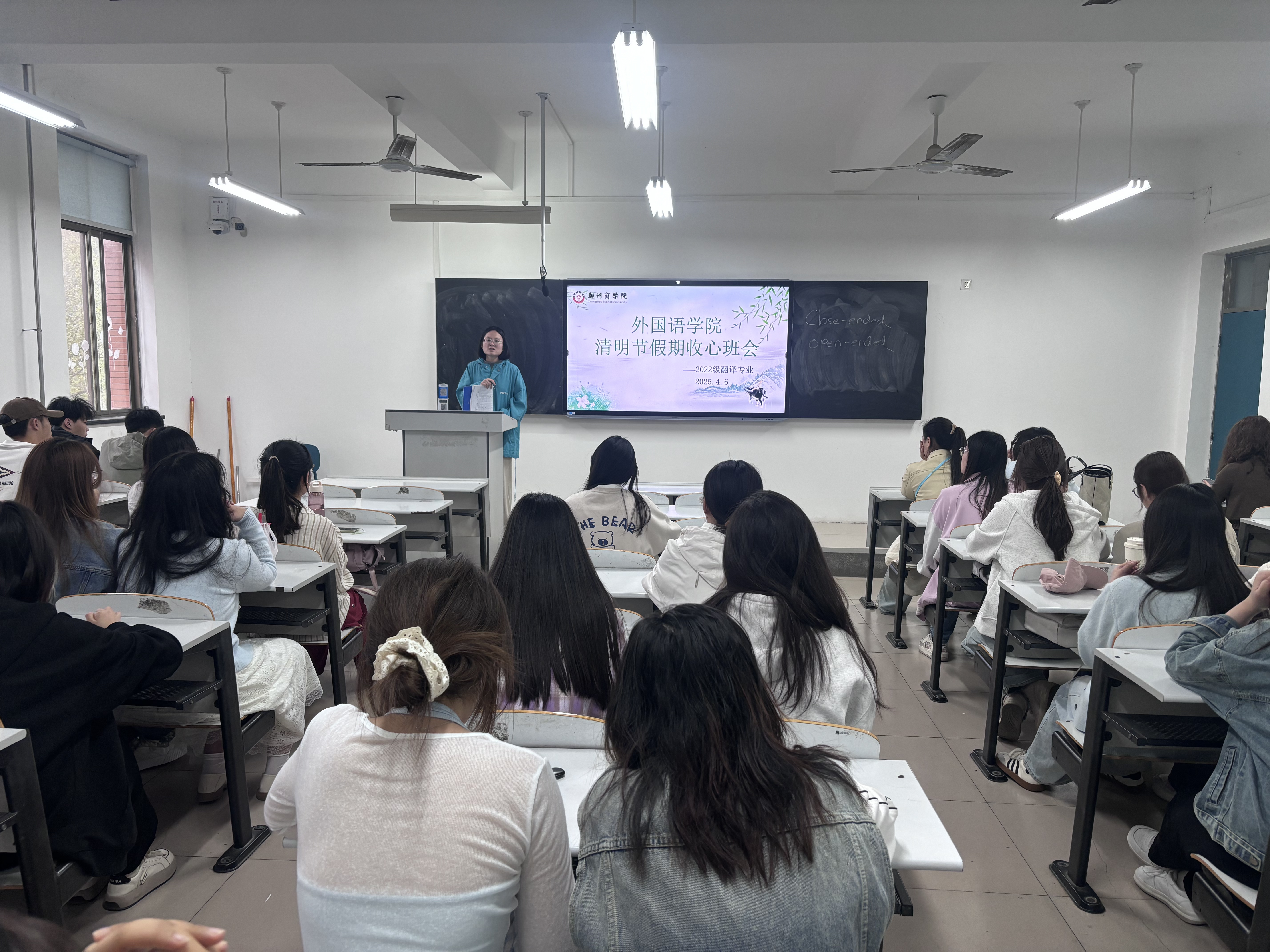 4月6日,外国语学院各班组织召开清明假期返校收心主题班会,旨在帮助同学们调整心态,迅速投入到学习生活中。这次班会活动以“清明假期返校收心”为主题,旨在帮助同学们从假期放松的状态中收心归位,重新找回学习的热情和动力。