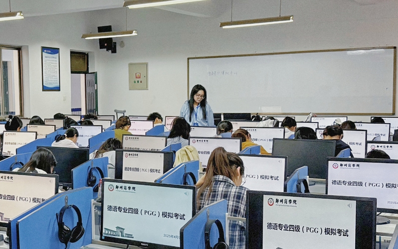 德语专业教师为专四模拟考试进行了精心的准备,包括制定专四模拟考试流程、评分标准,安排监考教师、考场,考前打印试卷、测试听力设备等。考试题型包括德语听写、听力理解、词汇语法、阅读理解和写作五个部分,分值为100分,限时170分钟。模拟考试严格按照专四考试的要求,进行实战演练。模拟考试后,德语专业老师承担改卷任务,从试卷批改到评讲,严格按照专四评卷标准,并根据考试结果,对学生开展专四考试专题辅导。