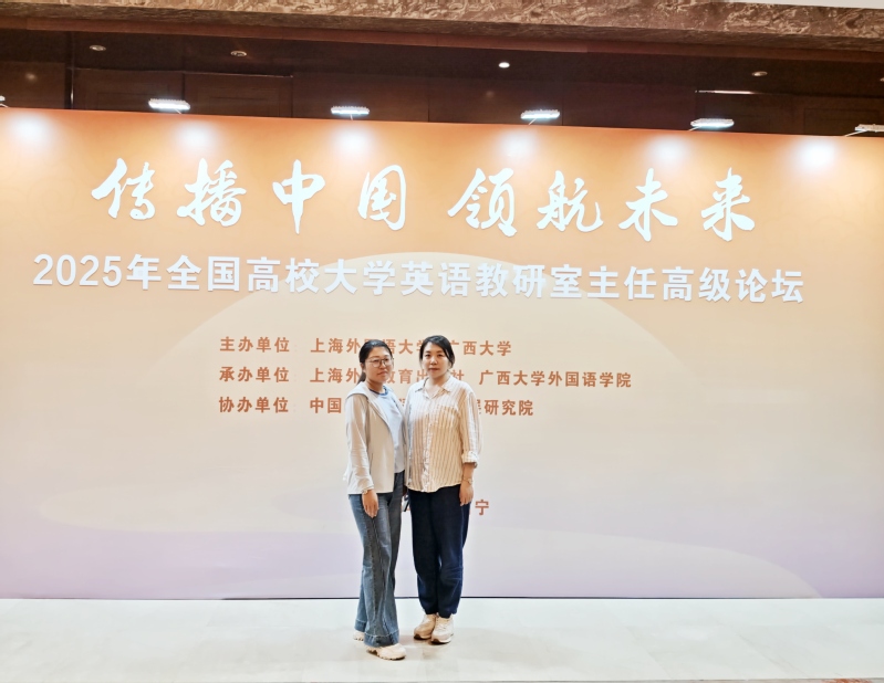 5月9日,2025年全国高校大学英语教研室主任高级论坛在广西南宁成功举办。论坛由上海外国语大学、广西大学共同主办。我院英语专业教研室主任程玮和商务英语教研室教师段田园参加了此次论坛。