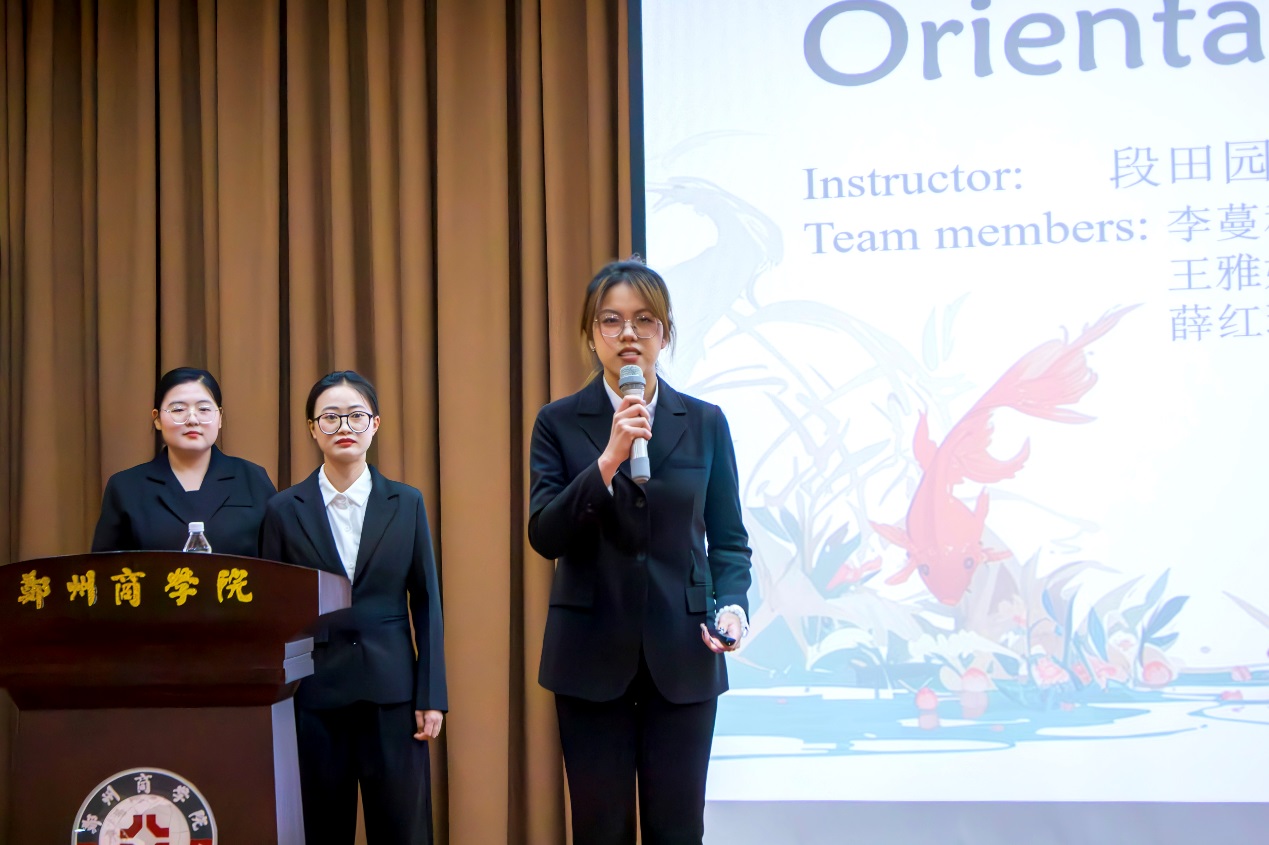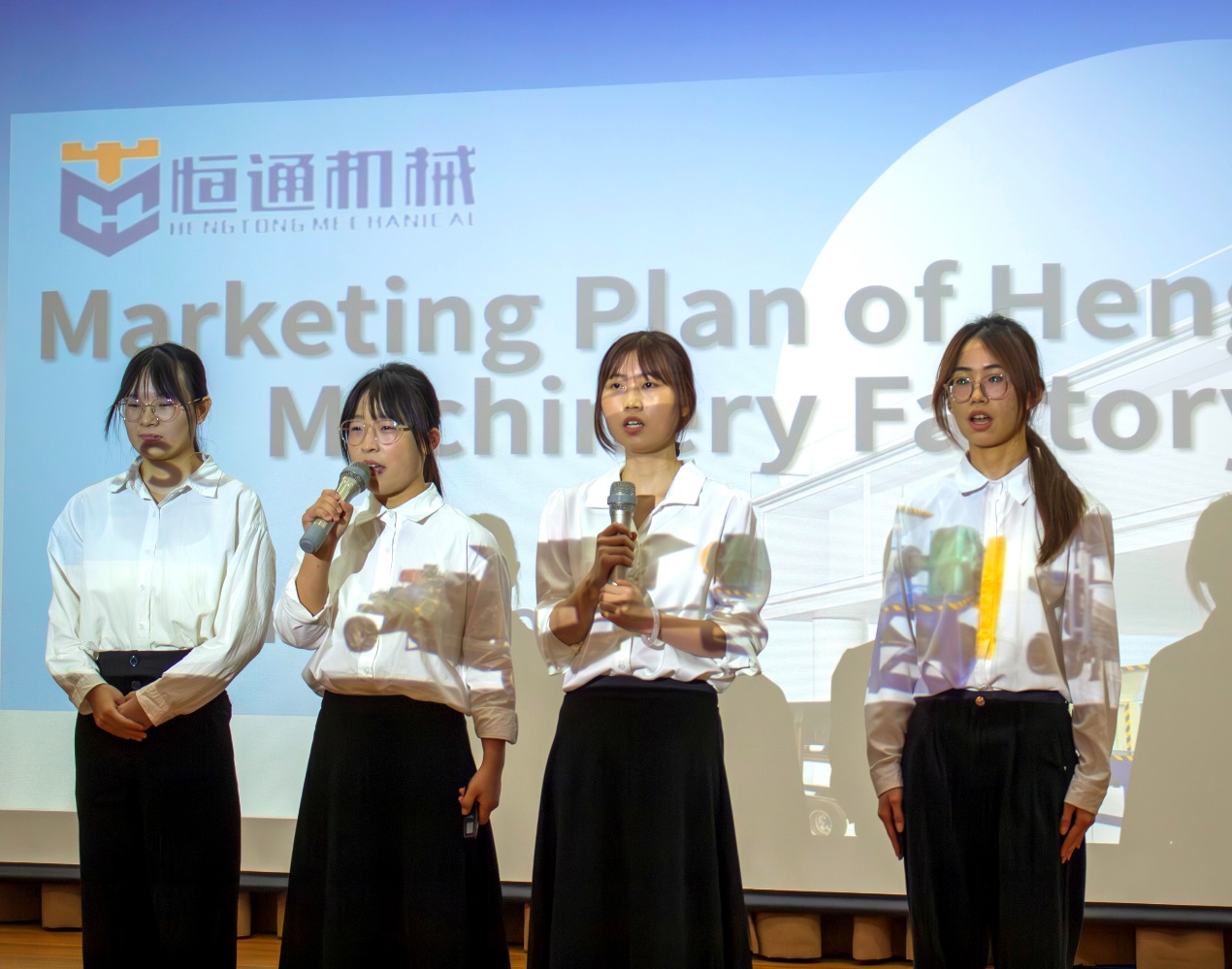 本次共有八支队伍参赛,选手围绕创新创业、企业调研进行选题,通过线上或线下调研、数据收集、市场分析、方案拟定等多种方式完成,最终以英文报告形式呈现。比赛过程中,8支参赛团队各展风采,从恒通机械营销策划、盲人出行智能辅助,到橘朵跨境直播等项目,参赛队伍的选题以校企合作项目、本土品牌为主,体现了商英学子敏锐的商业洞察力、敢想敢为的社会担当以及对弱势群体的人文关怀。展演过程中,参赛选手赛出水平、赛出风格,兼顾专业知识与市场需求,展现出卓越的创新思维和实践能力。