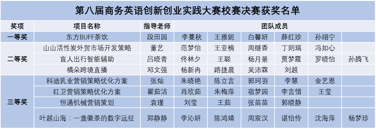 本次大赛是对商英学子的一次历练,更是为商英学子们提供了展示才华的舞台!大赛充分展现了商务英语学子的逻辑思维能力、语言综合运用能力及商务实践能力,激发了学生创新思维与创业意识,营造了浓郁的创新创业氛围。外国语学院将继续秉承“以学生为中心”、“课赛融通、以赛促学、以赛促教”的教育理念,进一步深化产教融合、专创融合、校企合作,为广大学子提供更多实践机会,全面提升创新型人才培养质量!