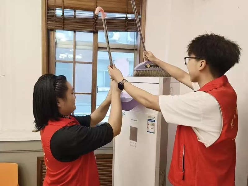 清洁打扫过程中,志愿者分工明确,对教室、走廊、公共学习区域等进行深度清洁,他们认真擦拭桌椅、黑板和窗台,清理地面垃圾,整理散乱的书籍和物品。经过大家的共同努力,教学楼环境焕然一新,为师生营造了更加整洁舒适的学习空间。