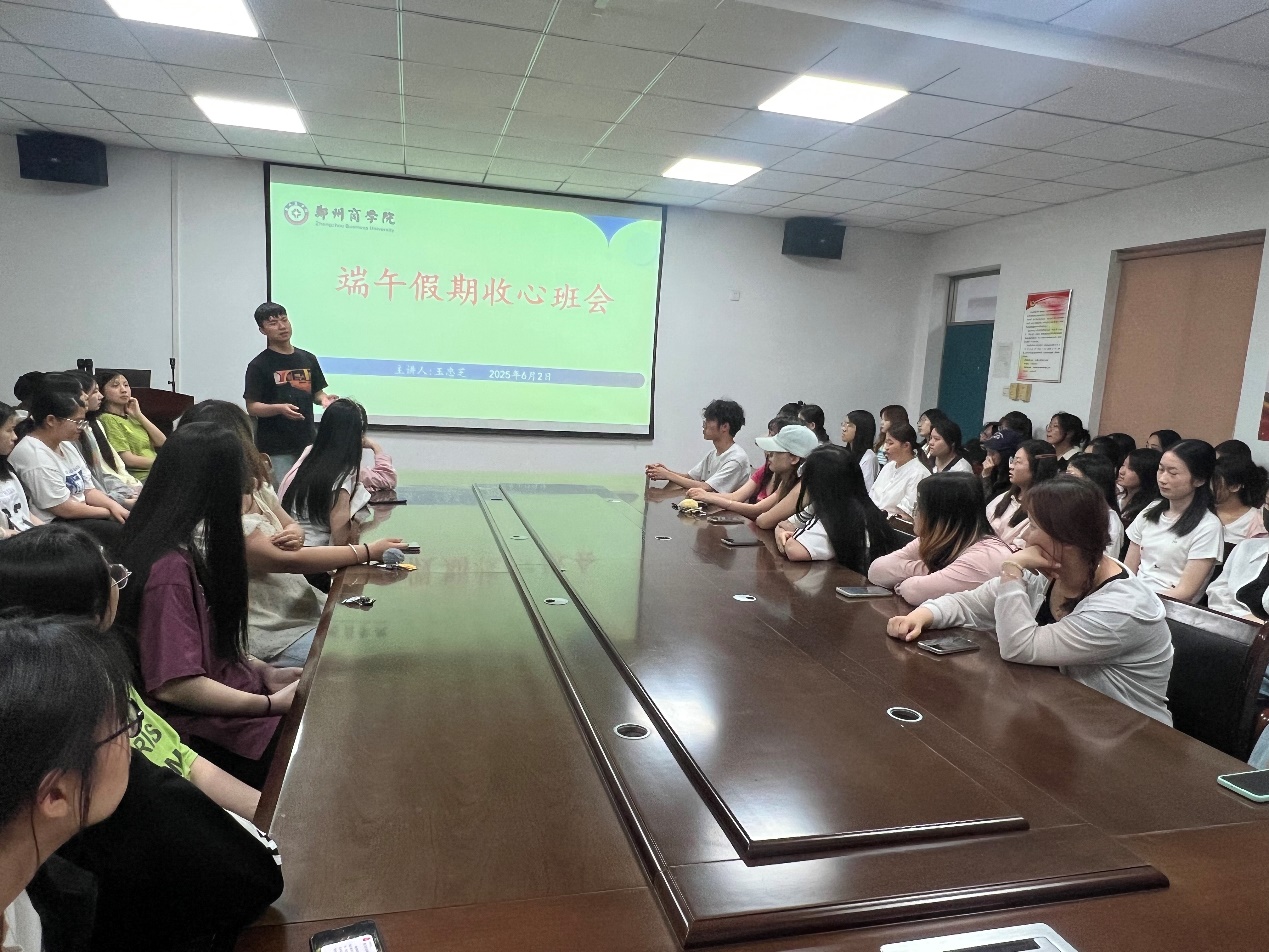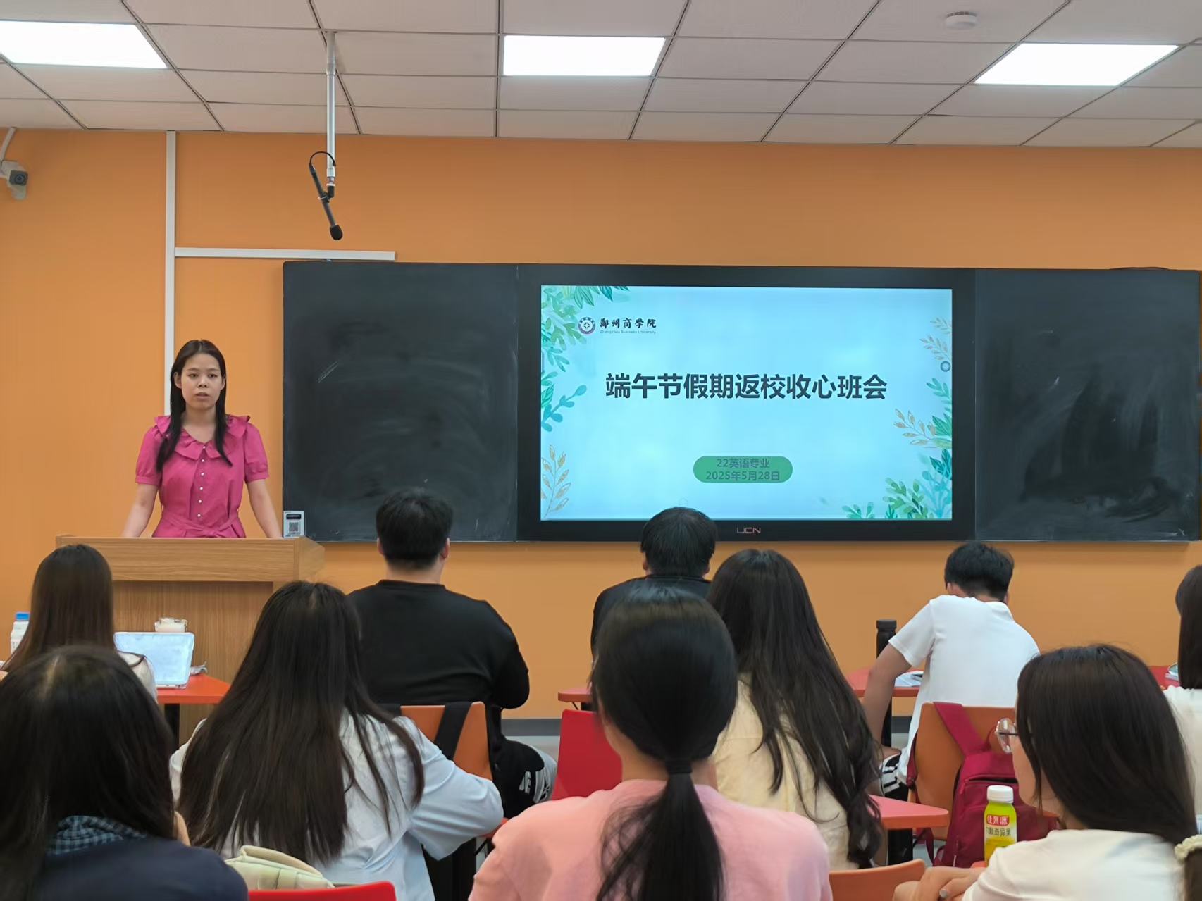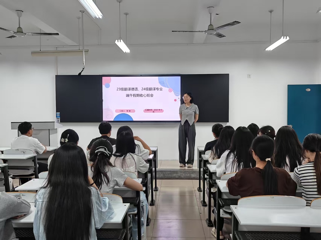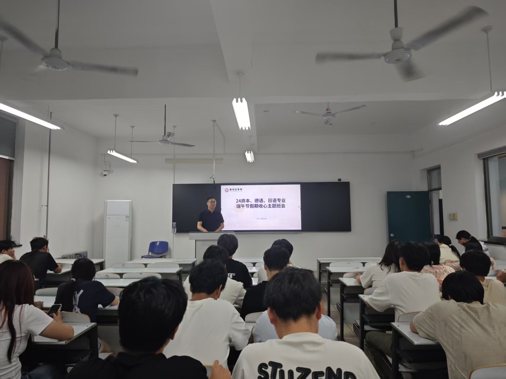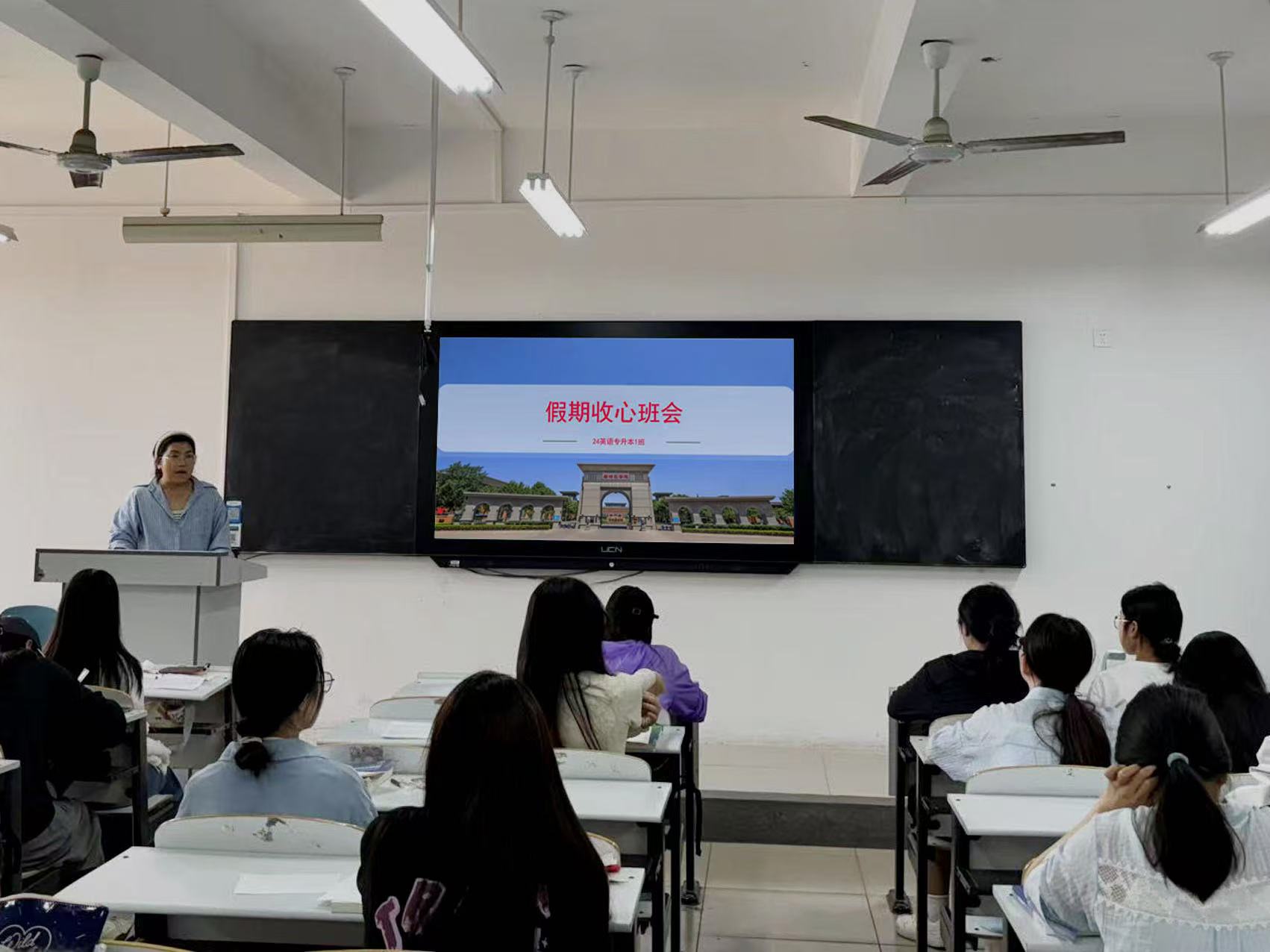为帮助同学们及时调整状态,以饱满的精神面貌投入到学习生活中,6月2日晚,外语学院各班级在辅导员的组织下召开端午假期收心班会。