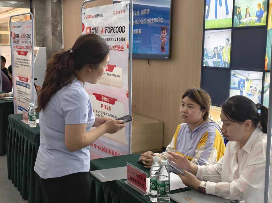 招聘会现场人声鼎沸,气氛热烈。学生们手持简历,认真咨询企业招聘需求,了解生涯路径规划与就业知识运用的技能方法;企业代表在展位前通过面对面交流方式,向来自不同专业的学生们全面介绍公司的概况、企业文化、职业发展路径以及福利待遇等。此次招聘会的面试环节也备受关注,企业根据不同专业的特点,设置了多样化的面试内容,学生运用流利的英语与面试官进行沟通,充分展示了自己的技巧和应变能力。