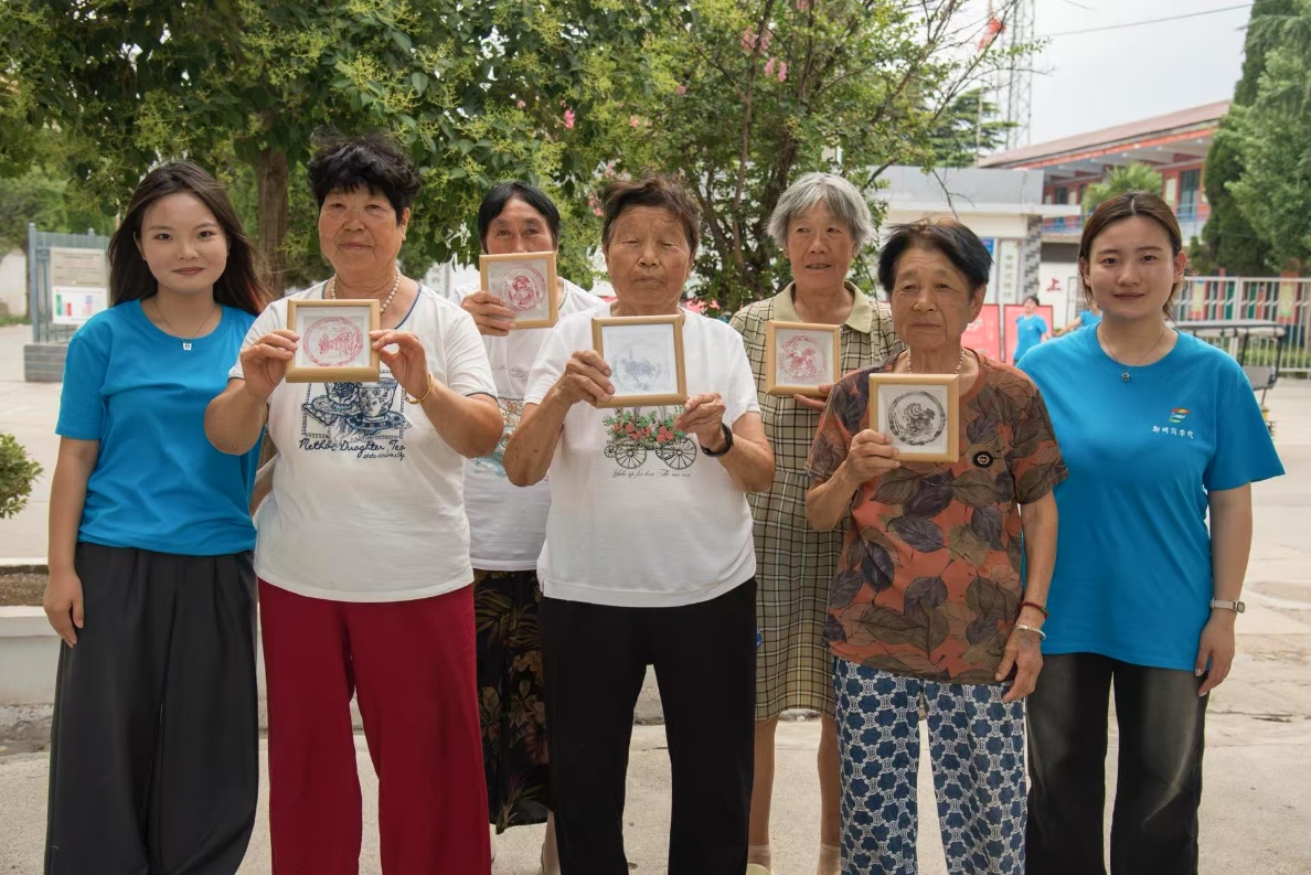 带着在巩义市博物馆所学地技能,三下乡实践团队成员积极践行文化传承使命。团队精心采购以十二生肖为主题的拓印材料,走进小学课堂与乡村,让非遗技艺焕发全新活力。在龙尾村广场,团队搭建临时教学场地,以手把手教学的方式,指导孩子和村民完成拓片制作。为增强非遗体验的纪念价值,团队还为每份拓片成品配备精致相框赠予参与者,让传统文化印记得以长久留存,在百姓心中播撒热爱非遗、传承文明的种子。