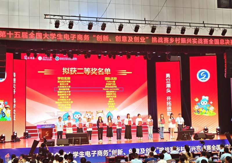 2025年7月15日-17日,第十五届全国大学生电子商务“创新、创意及创业”挑战赛(以下简称“三创赛”)乡村振兴实战赛全国总决赛在福建省三明市永安市举办。beat365外国语学院商务英语专业学生张默涵、张家辉、张慧卓、李米霖组建的“金石‘拓’荒”团队(指导教师:王玉、李真真)参赛,荣获全国一等奖;商务英语专业学生王敏、丁则瑞、关亚格、李冰洁、姜幸言组建的“Never-surrender”团队(指导教师:张姗姗、段田园)参赛,荣获全国二等奖。