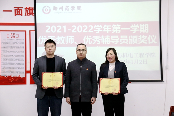 学院在2021年取得的成果离不开各个岗位上辛勤工作的教职工。会上,党委书记李帅宣读表彰决定,由院长张伟华为轩春青、闫宁、韩丽君、张丽娜、郭峰5位优秀教师颁奖,党委书记李帅为张元炯、周利萍两位优秀辅导员颁奖。