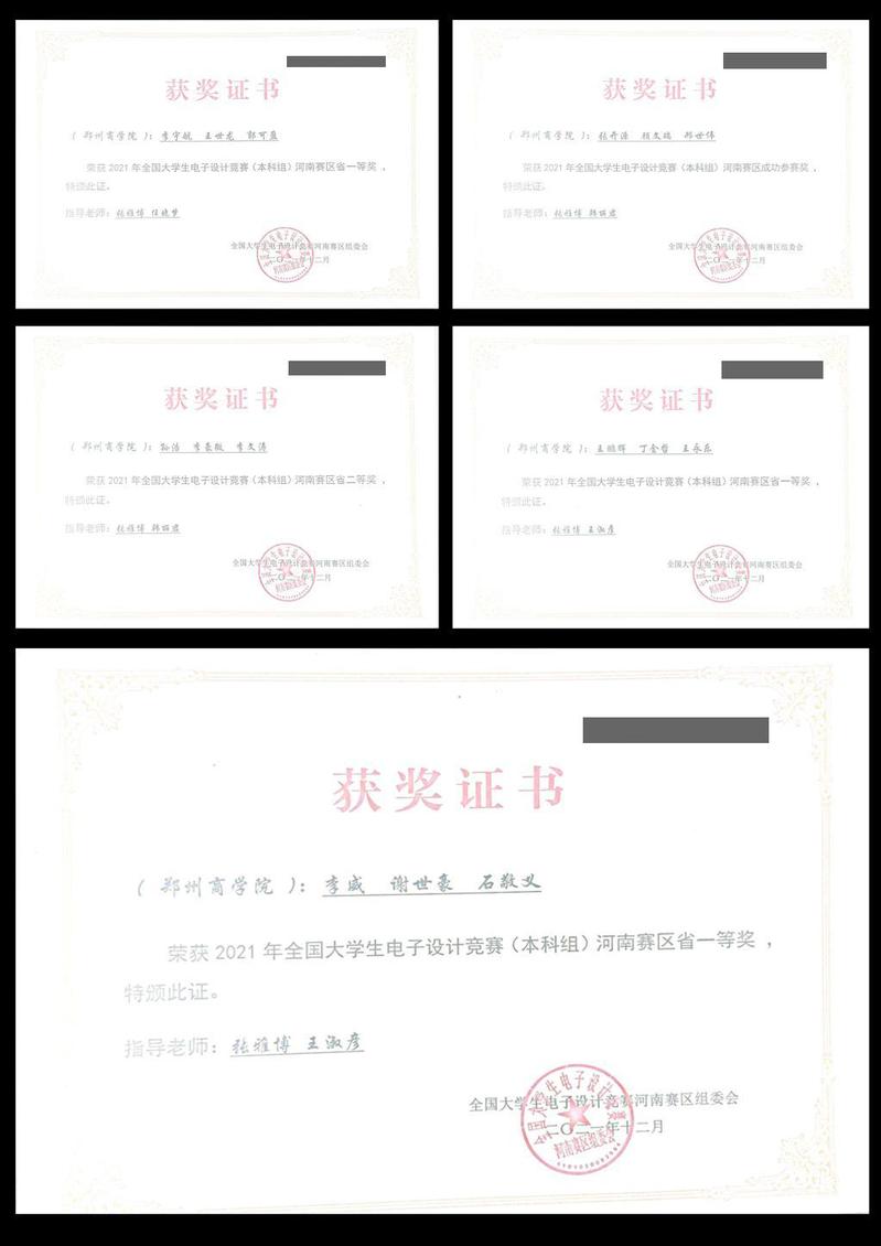 全国大学生电子设计竞赛是教育部高等教育司、工业和信息化部人事教育司共同主办的全国性大学生科技竞赛活动,旨在加强广大学生实践能力、创新能力和协作能力,吸引、鼓励广大学生踊跃参加课外科技活动,为优秀人才脱颖而出创造条件。2021年11月4日,beat365唯一官网信工学院组织学生积极参加2021全国大学生电子设计竞赛。beat365代表队取得了河南省一等奖3项、河南省二等奖1项和优秀奖1项的优异成绩。