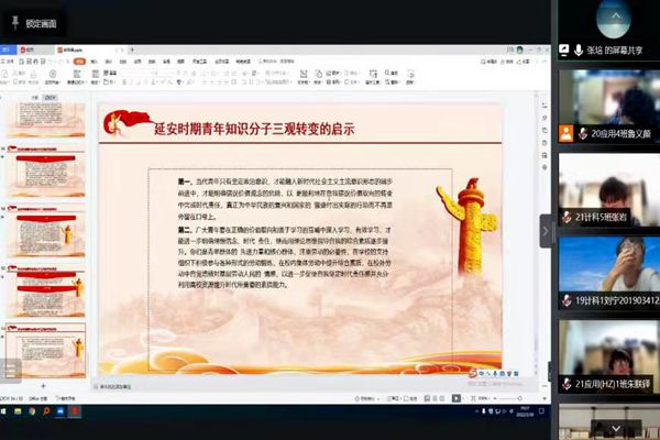 第三讲党课的主题是《从延安精神中明确新时代青年的担当》,张老师从以下几个方面进行讲解:什么是延安精神、延安精神的丰富内涵以及我们能从延安精神中学到什么。课后同学们表示听讲以后对延安精神有了一种新的认知与体会,理解了延安精神中的自力更生艰苦奋斗,全心全意为人民服务,理论联系实际,不断开拓创新的精神。