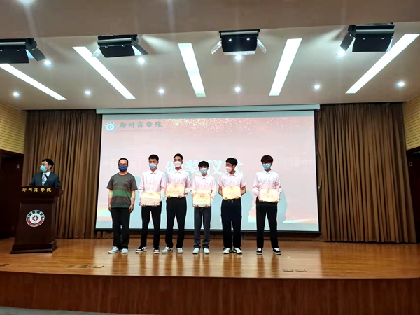 会议第三项:由参加表彰大会的各位领导及各教研室主任为获奖学生颁奖。本次竞赛共10人获一等奖、20人获二等奖、35人获三等奖、三个班级获优秀组织奖。由杨德青、景红蕾主任为获三等奖的同学颁奖并合影留念;薄林海、李晓东、李深磊、张雅博主任为获二等奖同学颁奖并合影留念;林海霞院长、李帅书记为获一等奖的同学颁奖并合影留念;张伟华院长为获优秀组织奖的班级颁奖,参会师生掌声热烈,对获奖学生致以衷心祝贺。