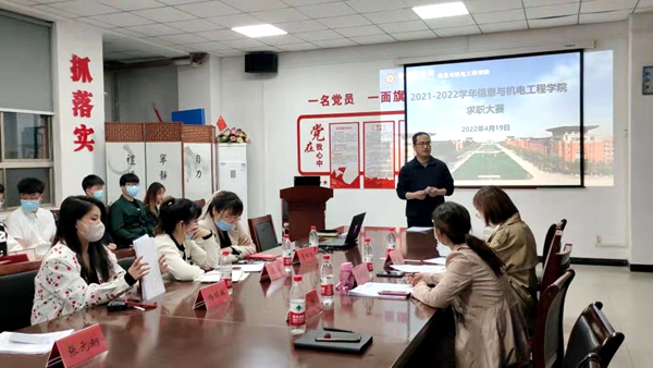 2022年4月19日晚7点信工学院首届求职大赛于4号楼104举办,出席本次活动的嘉宾及评委有信工学院党总支书记李帅,信工学院就业指导组老师张元炯、杨瑞瑞、李萌萌、裴杨、孔颖、李红颖、朱飞荣及信工学院14名学生代表。