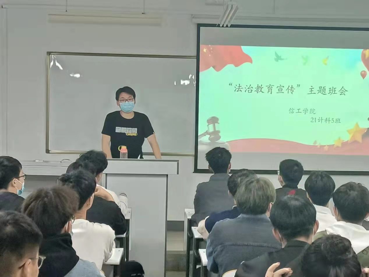 以习近平总书记关于教育的重要论述和习近平法治思想为指导,紧密结合学校实际,“弘扬法治精神,普及法律知识,推进依法治校,共建和谐社会”为主题,认真落实河南省教育系统“八五”普法规划,增强我院学生法律意识和法治观念,提高学生的法律法规知识水平和自觉运用法律法规来规范自身行为的能力,培养尊法、学法、守法、用法的信工学子,开展“法治教育周系列活动”,积极推进“平安、和谐”校园建设。