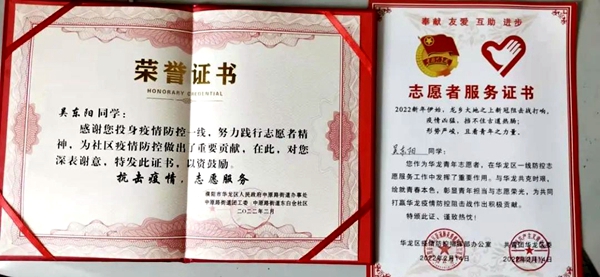 作为新时代主力军,20机械1班主动担起时代重任,在平时生活及社会需要时,能挺身而出,为社会和人民做出自己的贡献。在防疫抗洪中有多位同学得到当地政府表扬,并授予优秀志愿者等荣誉称号。