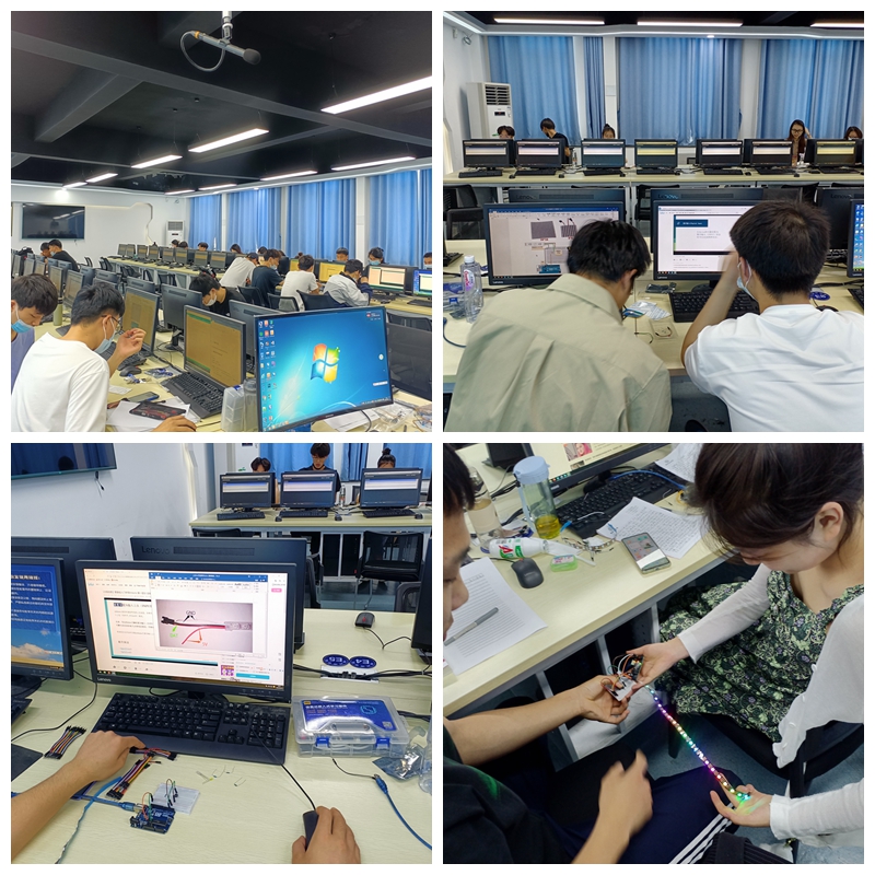 同学们、教师、教室及我们准备的各种教学器件是我们上课的最佳组合,经过两天的学习,每个实践课程的同学们都收获满满,不仅拓展了知识面,也提高了动手能力,探索了自己的项目开发的方向,也体验了开发的快乐!