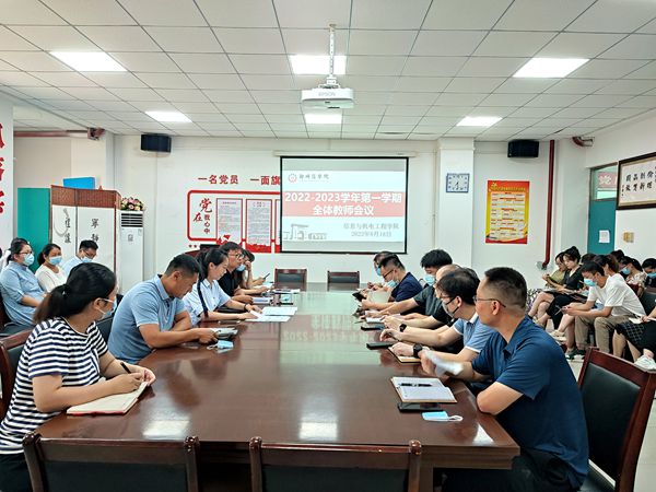 为做好新学期各项工作安排,确保全体教职工以饱满的精神状态投入到新学期的工作当中,8月18日上午9点,信工学院2022-2023学年第一学期第一次全体教职工大会在四号教学楼104会议室举行,院领导班子成员及全体教职工参加了本次会议。会议由学院副院长张伟华主持。