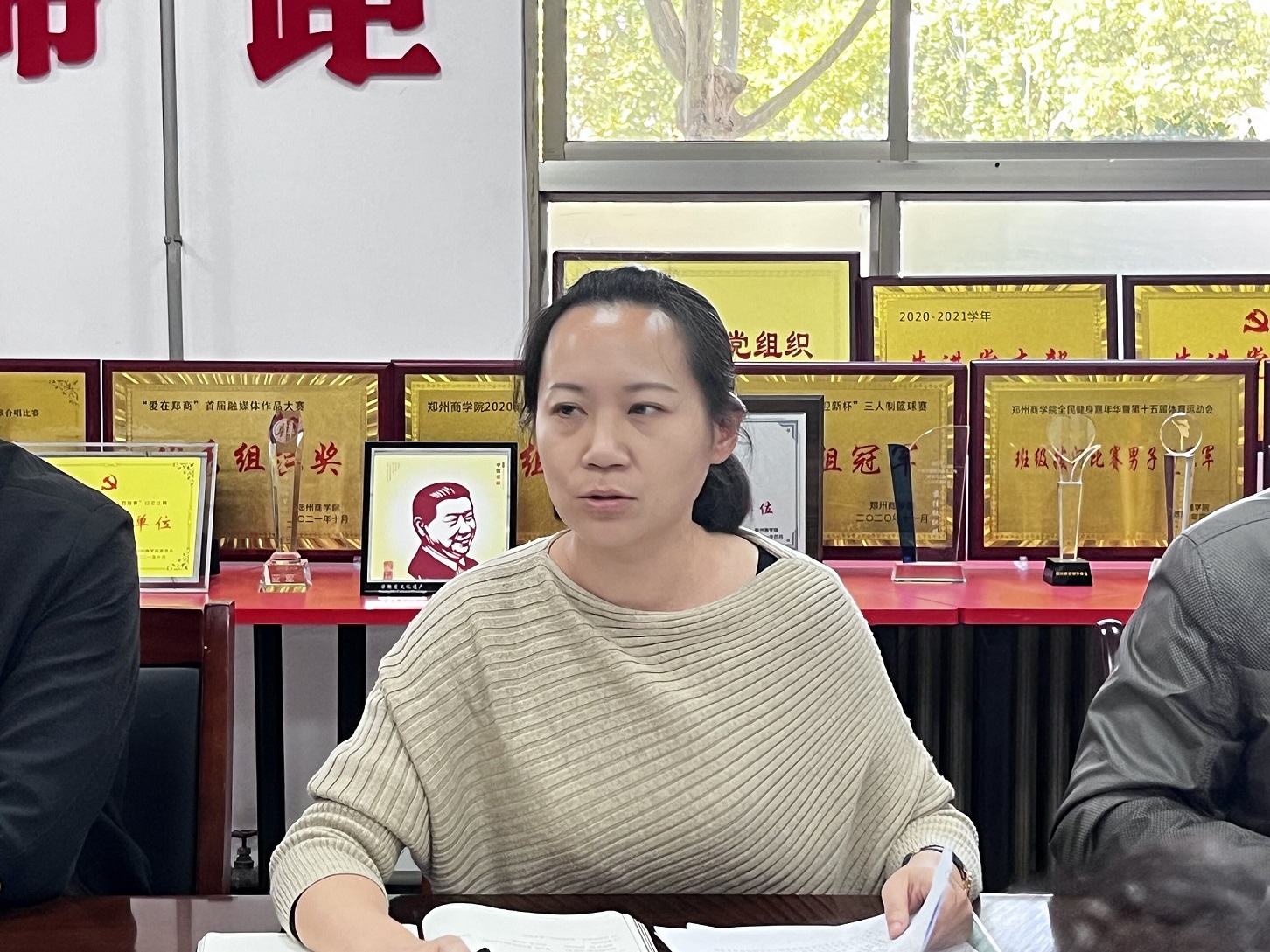 正值喜迎党的二十大,认真学习党的二十大报告的活动期间,信工学院先播放了一组党的二十大主题的学习视频。首先是关于报告政策解读的新闻视频,其次是关于思政课榜样路丙辉教师及张桂梅校长的相关报道。然后我院张伟华、龙瑞、李姗、温文豪、曹飞扬等五位同志依次发言,分享了自己学习党的二十大报告的心得。