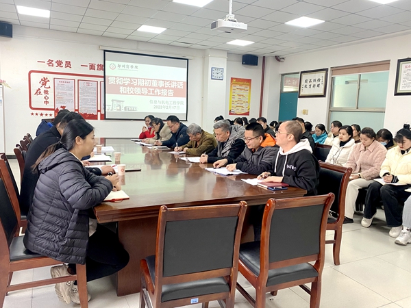 信工学院全院教工将切实学习贯彻董事长讲话精神和校行政、党委两个报告精神,切实把思想和行动统一到此次会议精神上来,把会议精神落实在学院的教育教学工作中,在新的学期,列好工作计划,抓好各项落实;全体教工在新的学期定会坚定信心,奋勇争先,立足新起点,锚定新目标,以更加饱满的工作热情迎接新的挑战,为学院教育教学工作、学校教育事业高质量发展积极贡献力量。