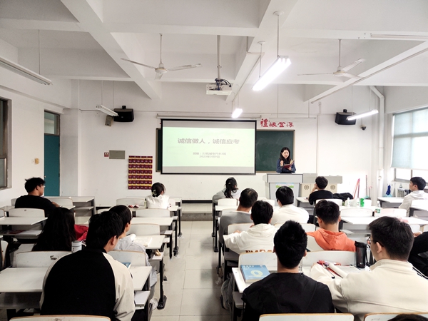 全国大学英语四、六级考试将于本周3月12日举行,为保证本次考试各项工作顺利进行,加强对学生的诚信教育,严肃考风考纪,杜绝考试违纪行为,信工学院组织各班开展了关于大学生英语四级、六级考试“弘扬诚信之风,以考风正学风”的主题班会。