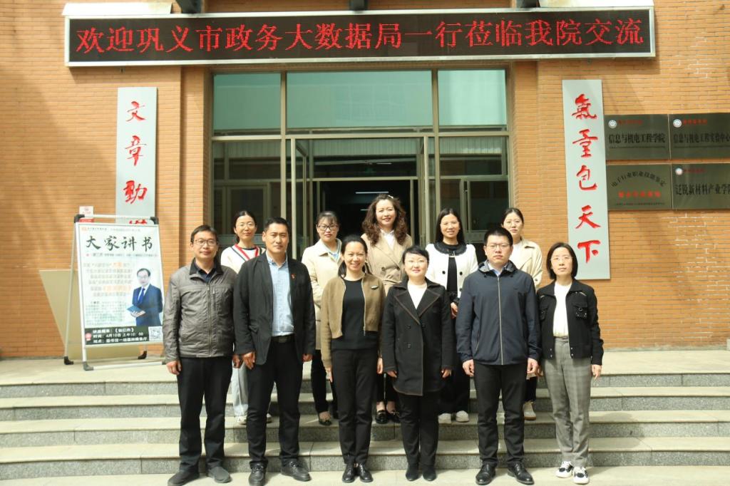 巩义市政务大数据管理局与信工学院领导在四号教学楼前合影留念