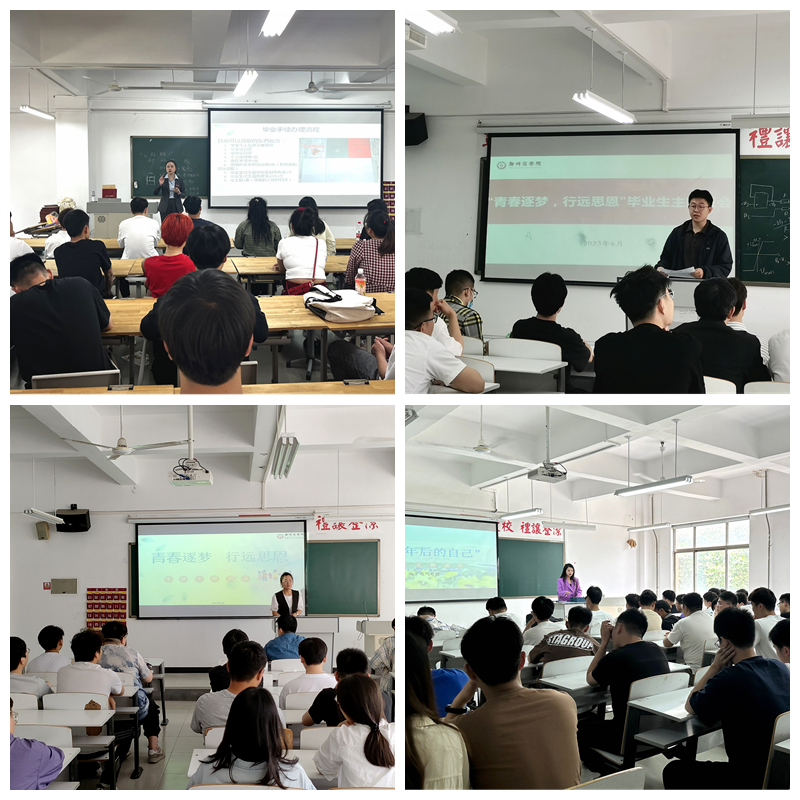 班会上,辅导员老师带领全体毕业生回顾和感悟大学奋斗历程,畅谈青春理想,分享人生感悟,激励大家不忘初心,砥砺前行;殷切叮嘱即将步入社会的毕业生们,要讲自律、有克制、乐分享、有作为,努力实现自身价值;要明确角色定位,明确职业选择,做好职业规划;要做到学习不止步、思考不止步,做一个有思想的有志青年。