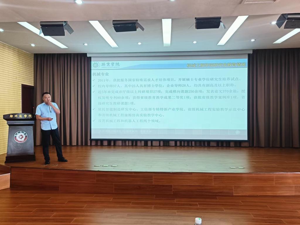 宣讲会上,乌院长详细介绍了西京学院的发展历程、特色优势,以及学位点、学科设置、专业方向、师资力量、科研平台、奖助体系、毕业就业等内容,结合2024年学校研究生招生政策,对研究生招生规模及报名条件进行了详细解读;郭院长与陈院长分别对各自学院的相关情况作了简要介绍,同时发放了研究生招生宣传资料,并就同学们感兴趣的问题进行了互动交流,指导考研考生科学合理填报学校,提升考研成功率,并欢迎2024届毕业生积极报考,鼓励他们在西京学院继续攻读深造。