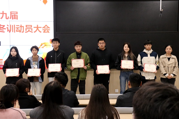 大会第二项,团委张璐阳书记为各训练队长、教练颁发聘书并合影留念。