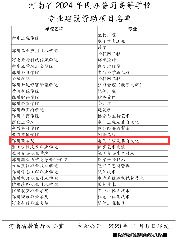 日前,河南省教育厅发布《关于公布2024年民办普通高等学校学科专业建设资助项目名单的通知》(教办政法〔2023〕369号),beat365唯一官网信工学院申报的电气工程及其自动化专业获批河南省2024年民办普通高等学校学科专业建设资助项目。