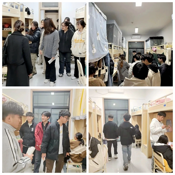参观人员齐聚在各自楼前,随着领队老师的带领,同学们进入宿舍区域,眼中充满了期待和好奇。参观开始后,同学们静心感受着寝室间的差异与相似之处,对于舒适度、地面整洁度、床铺整齐度以及物品有序摆放程度都有着清晰的认知。