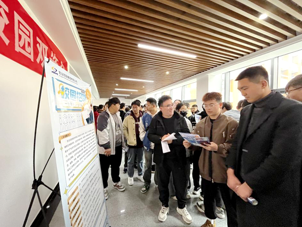 双选会现场气氛热烈,展位前人头攒动,毕业生和用人单位积极互动,秩序井然。用人单位通过发放宣传材料、现场展示以及面对面介绍等形式,向毕业生介绍用工需求和工作待遇,提供的各种保障,吸引毕业生加入,毕业生们也结合自身实际,在多方了解企业信息后,向心仪的单位投递个人简历。现场还吸引了部分低年级学生前来感受就业氛围。