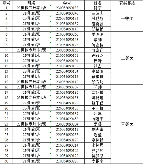 本次比赛面向全院机械专业学生进行选拔,共有100余名学生参加,比赛内容包括投影基础与构型和三维计算机绘图赛项。经过赛事组委会评定,机械类共计30名同学获奖,其中一等奖5名、二等奖10名、三等奖15名。