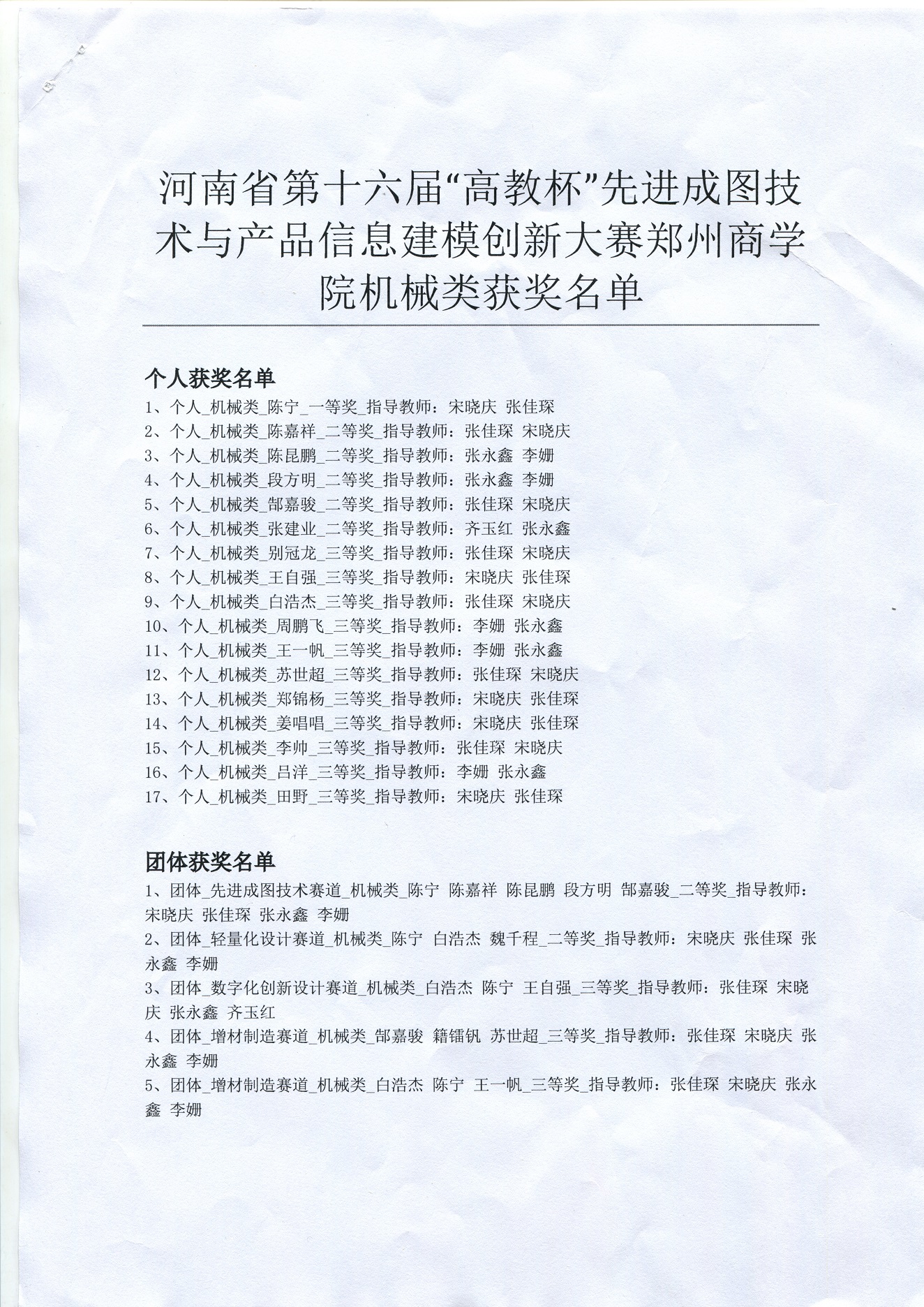 此次省赛经校级初赛选拔,信工学院共派出25名学生参与机械类比赛。经过激烈角逐,共17名同学荣获先进成图赛道个人全能奖,一等奖1名,二等奖5名,三等奖11名,其中参赛选手陈宁荣获个人全能一等奖,个人排名河南省第25。其他分赛道也有斩获,增材制造赛道团体二等奖,轻量化设计赛道团体三等奖,数字化创新赛道团体三等奖,beat365荣获河南省机械类团体二等奖,成绩再创历史新高。