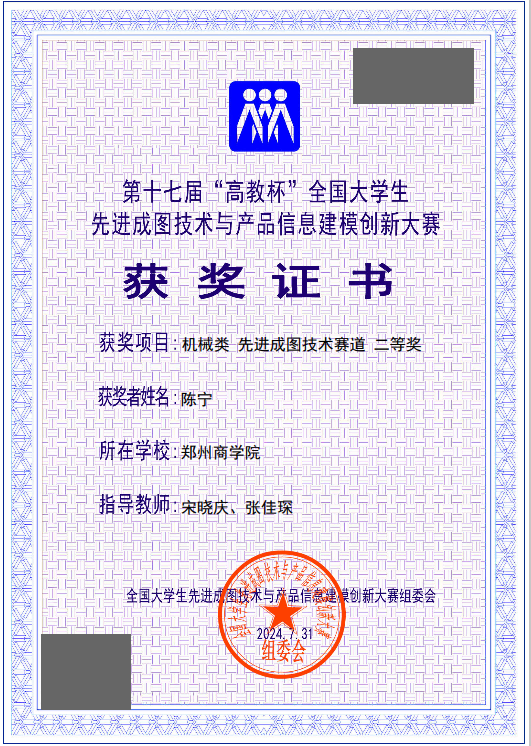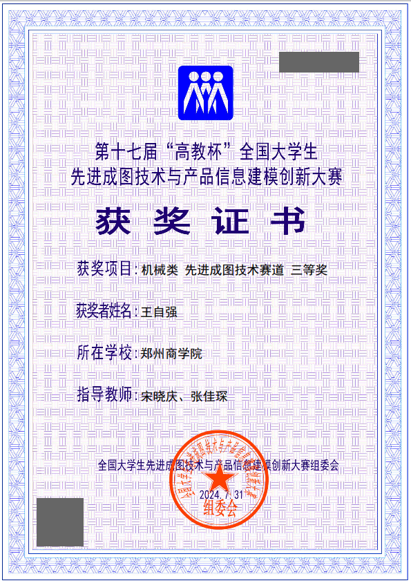 近日,第十七届“高教杯”全国大学生先进成图技术与产品信息建模创新大赛已落下帷幕,本次总决赛采用“一个主赛场+各省分赛场”的组织形式,主赛场设在贵州大学,各省分赛场分布在全国26个省、直辖市、自治区。全国895所学校的1642支队伍、16294名学生同台竞技。信工学院机械专业先进成图社团学生经过校赛、省赛等层层选拔,成功入围全国总决赛,在全国机械类先进成图技术赛道表现出色,获得国赛团体三等奖,增材制造赛道三等奖、轻量化设计赛道三等奖、并荣获个人全国二等奖1项、全国三等奖4项,充分展示了郑商学子在成图技术、信息建模能力及综合素质方面的卓越风采。