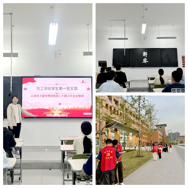 9月23日,信工学院学生第三党支部在A308教室开展9月份主题党日活动。会上,王书记组织党员认真学习党的二十届三中全会精神、认真学习贯彻习近平总书记关于教育、教师工作的重要论述和在全国教育大会上的重要讲话精神、入学习领会习近平总书记关于党纪学习教育作出的重要指示精神。