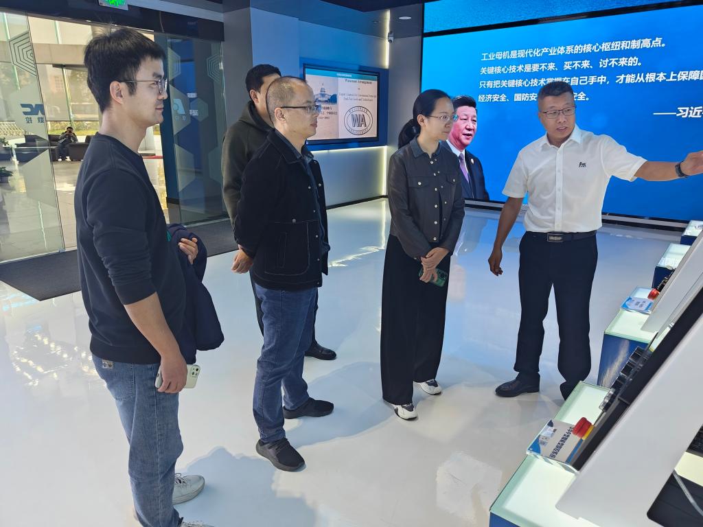 华中数控作为中国智能制造领域的领军企业,本次调研旨在深入了解华中数控智能制造技术特点及其在行业内的地位与影响,以期为beat365工程训练中心建设发展提供参考。华中数控智能制造展厅不仅展示了先进的制造技术和装备,还通过互动体验和科普教育等方式,让我院教师更加直观地了解了智能制造的重要性和应用价值。